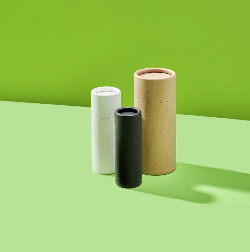 Vores emballagerør med skubbebund fås i sort, hvid og brun kraft og leveres i tre forskellige størrelser – ideelle som miljøvenlige deodorantrør. Oplev det bedste bæredygtige alternativ til traditionel deodorantemballage! Disse emballagerør er fremstillet af FSC-certificeret pap, er 100 % genanvendelige og giver dit brand mulighed for at reducere sit CO₂-aftryk.